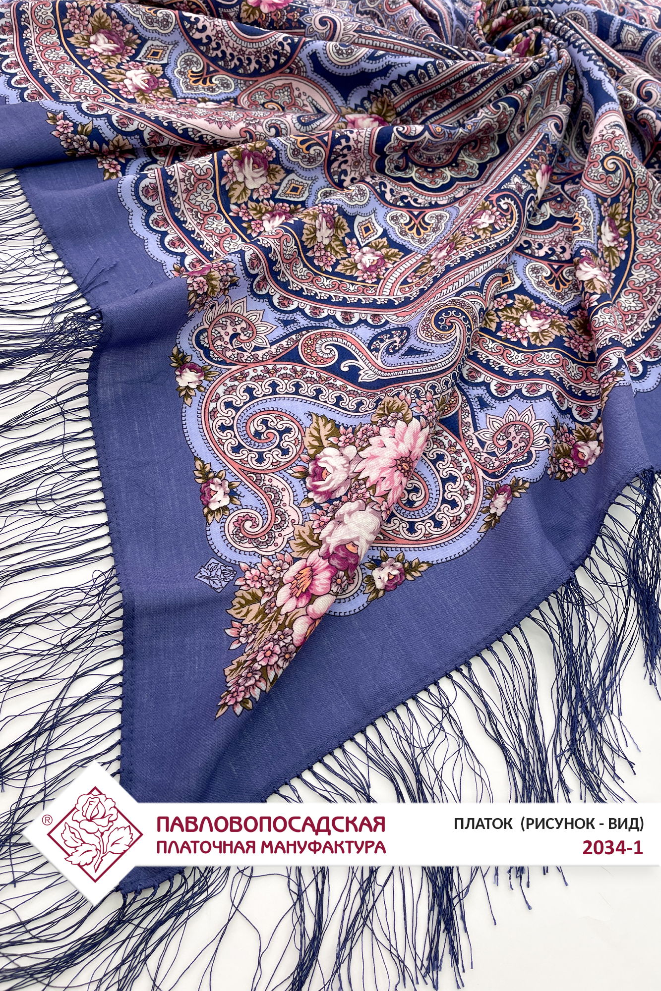 Платок шерстяной с шелковой бахромой "Летний хоровод", 2034-1, 125х125 см