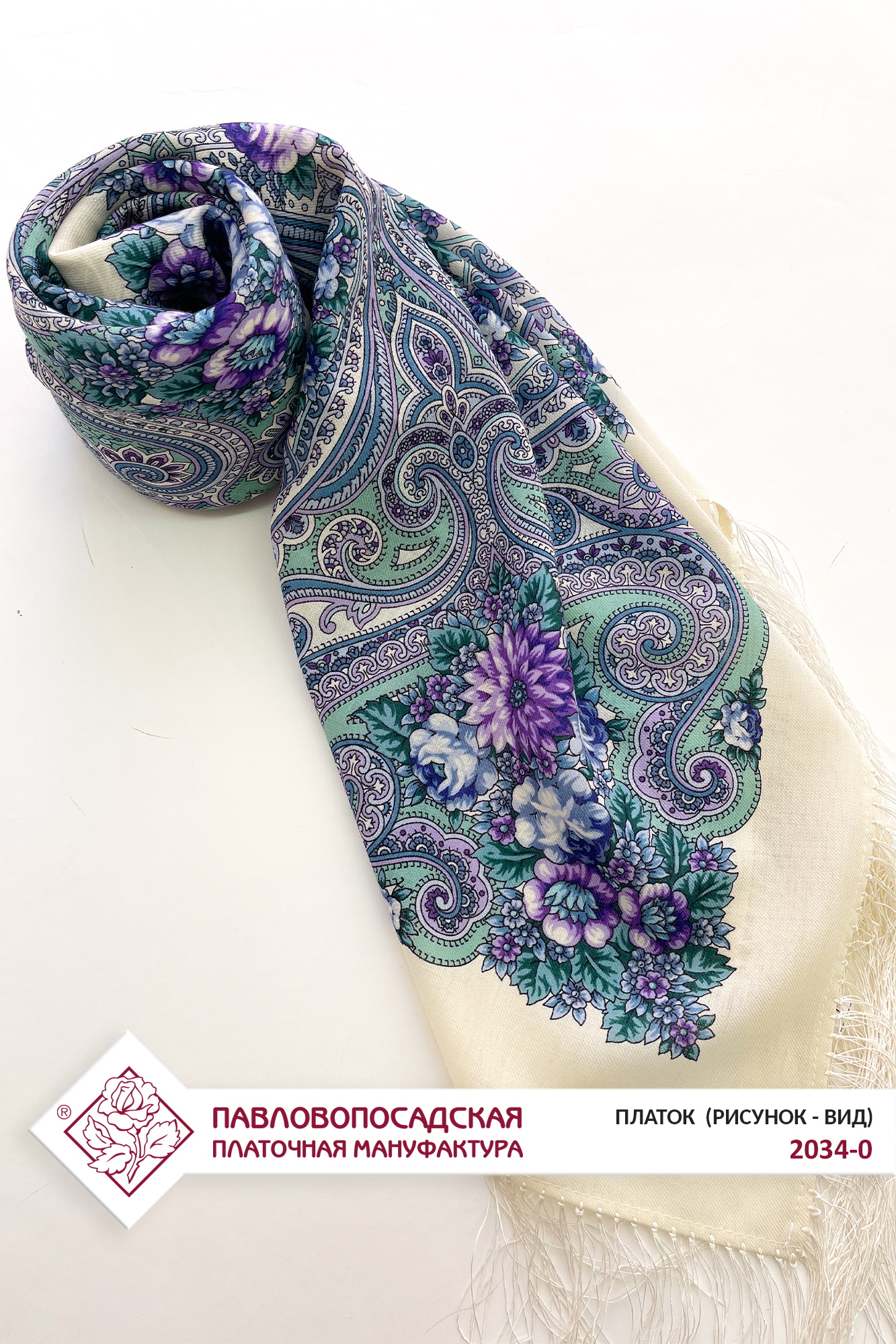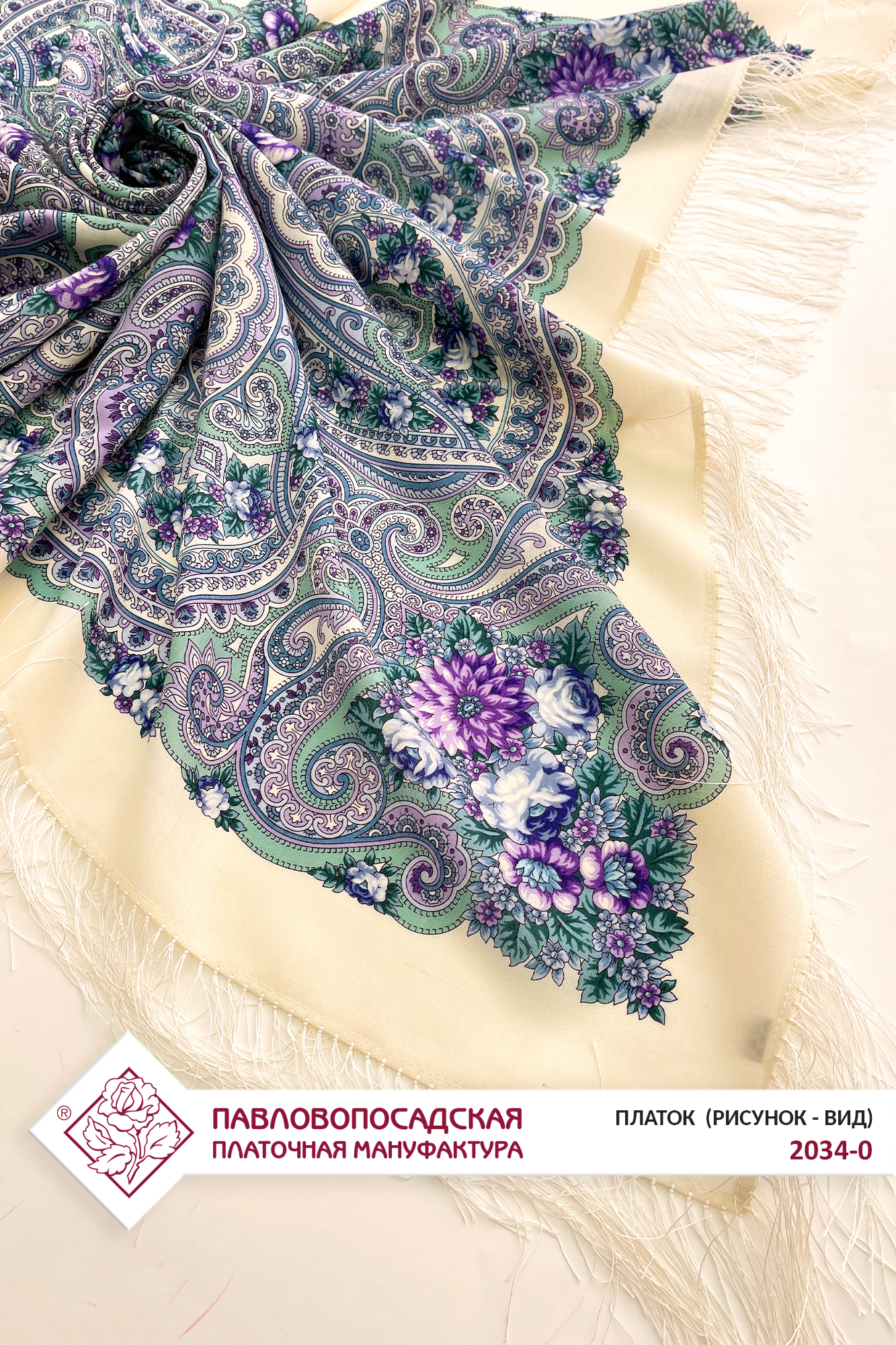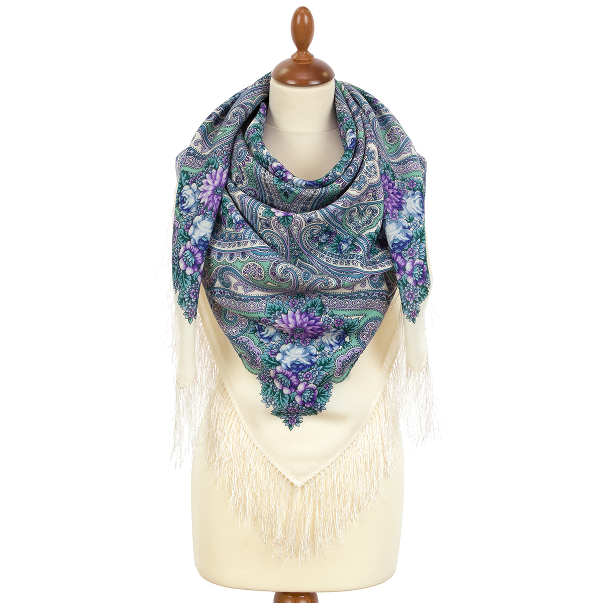 Платок шерстяной с шелковой бахромой "Летний хоровод", 2034-0, 125х125 см