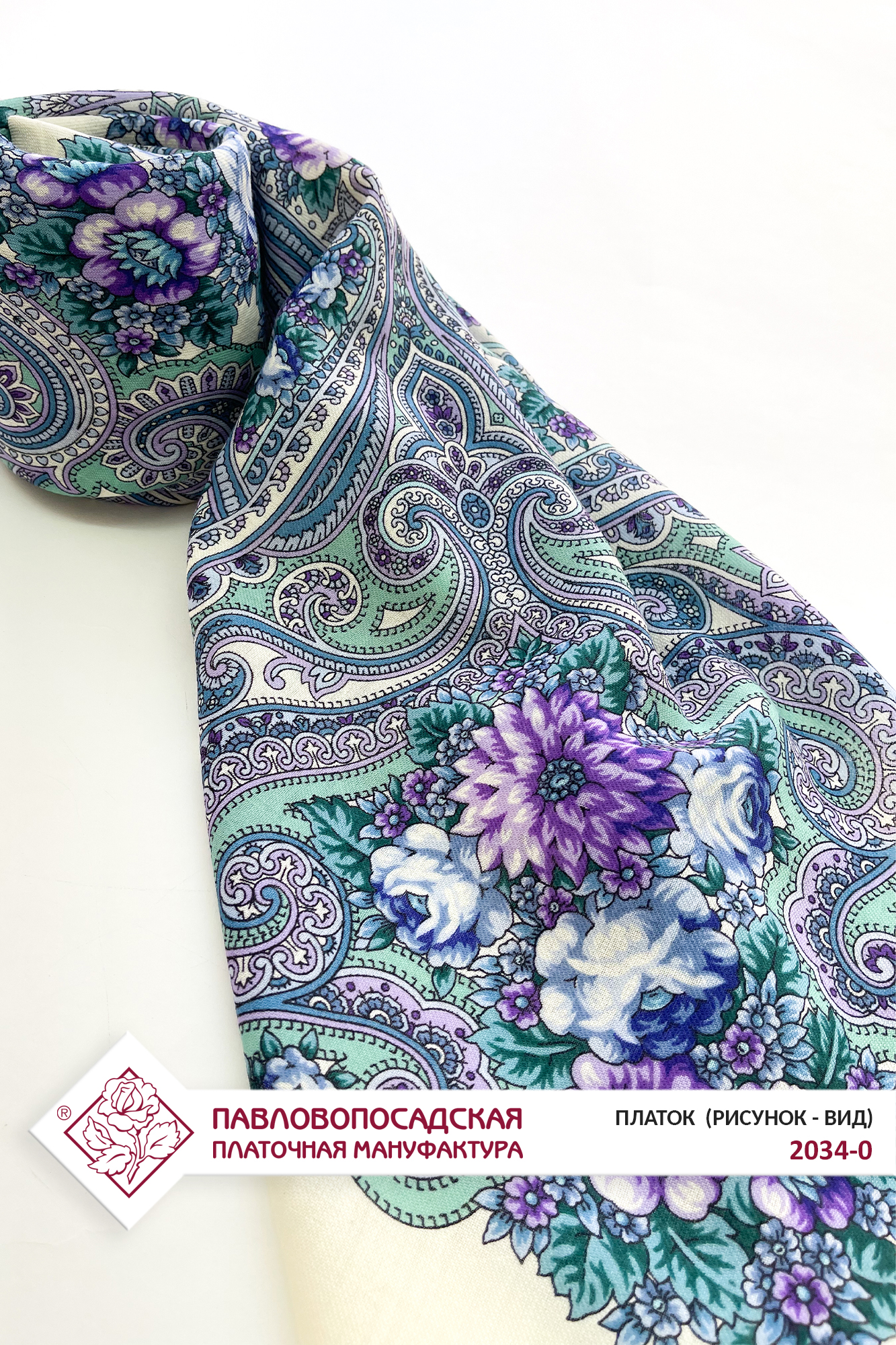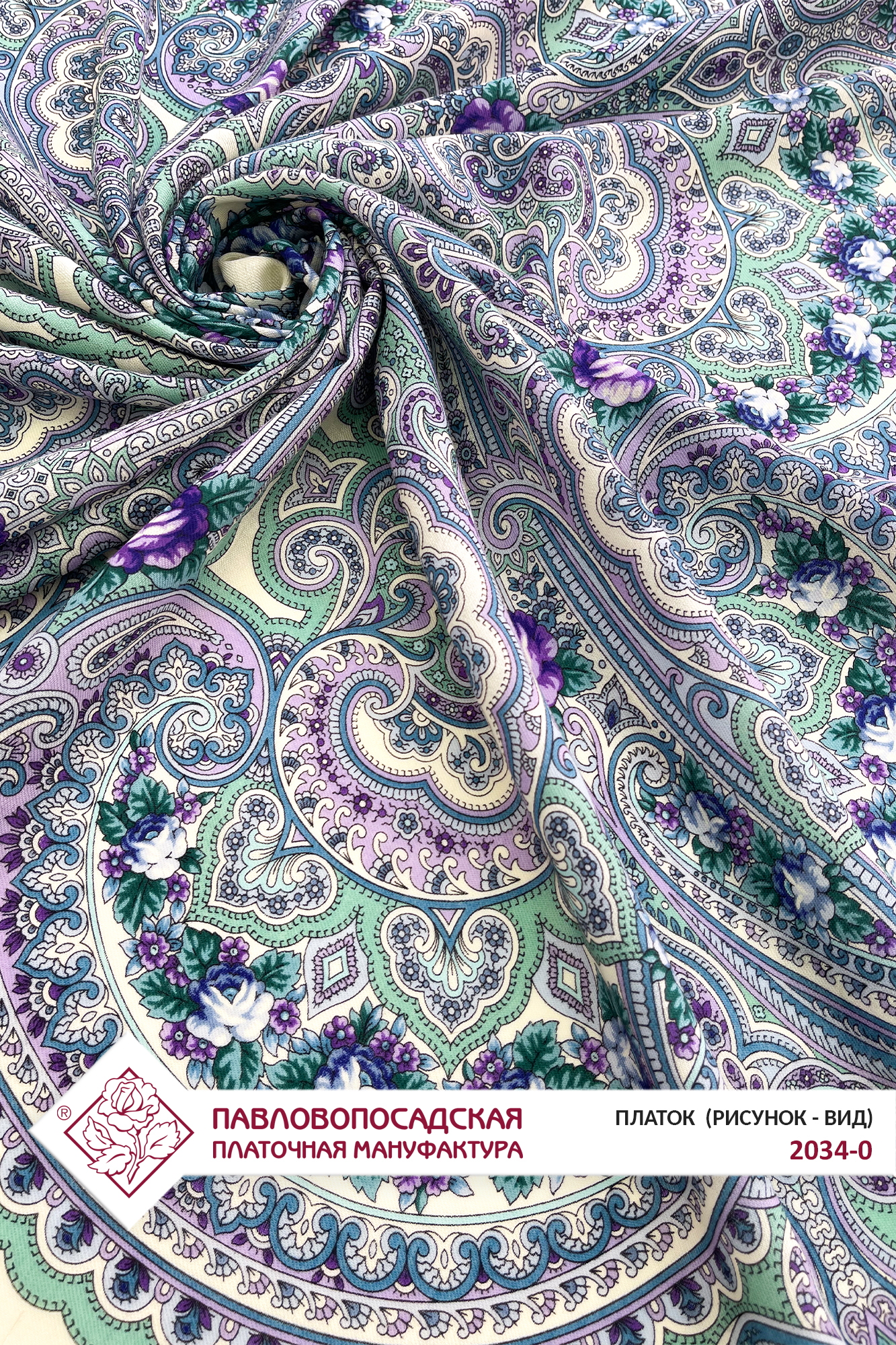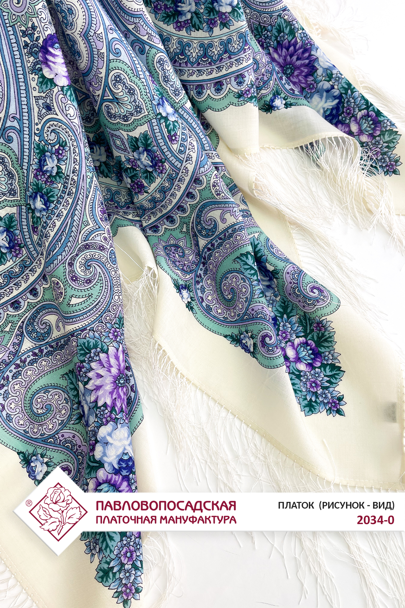 Платок шерстяной с шелковой бахромой "Летний хоровод", 2034-0, 125х125 см