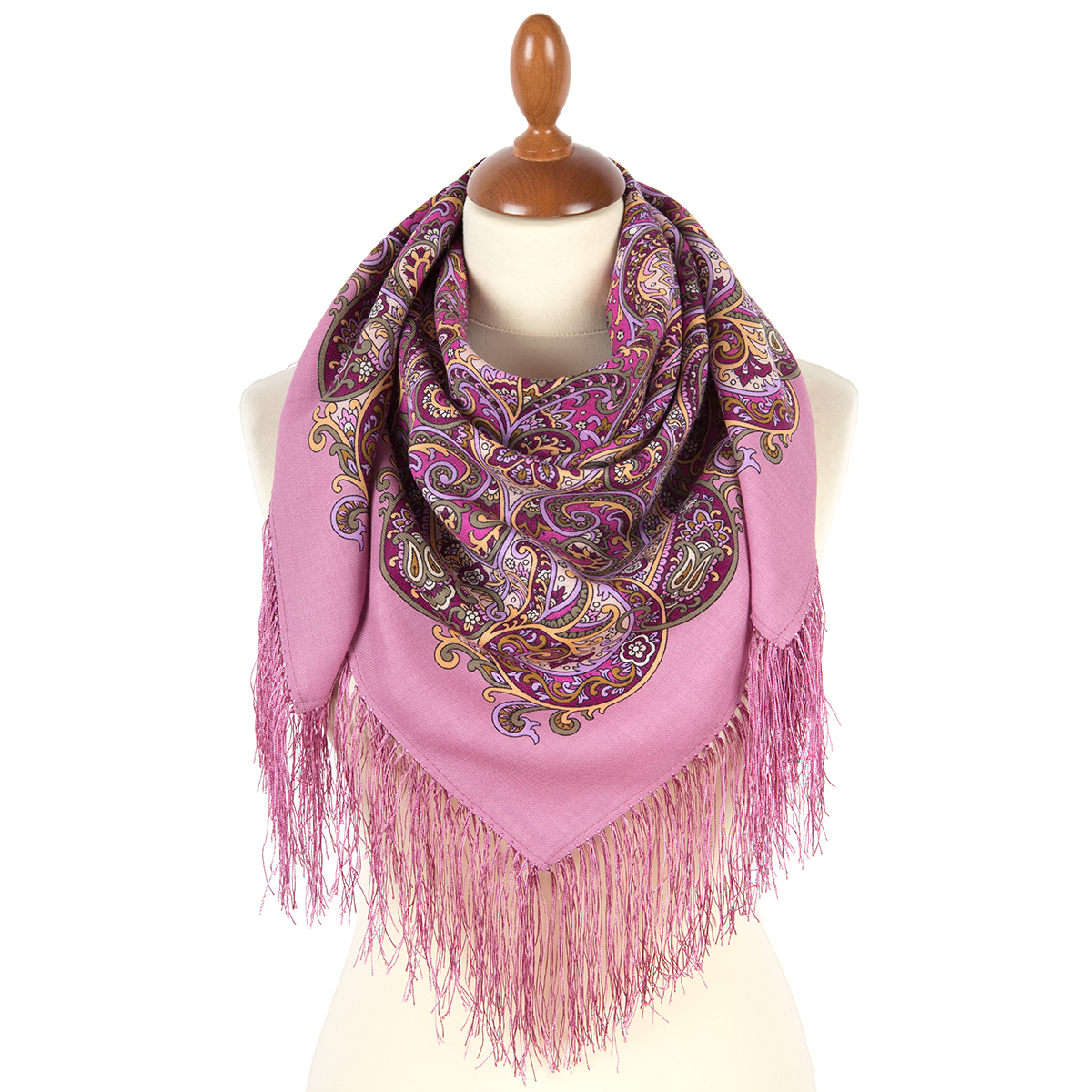 Платок шерстяной с шелковой бахромой "Весенняя метель", 2043-3, 89x89 см