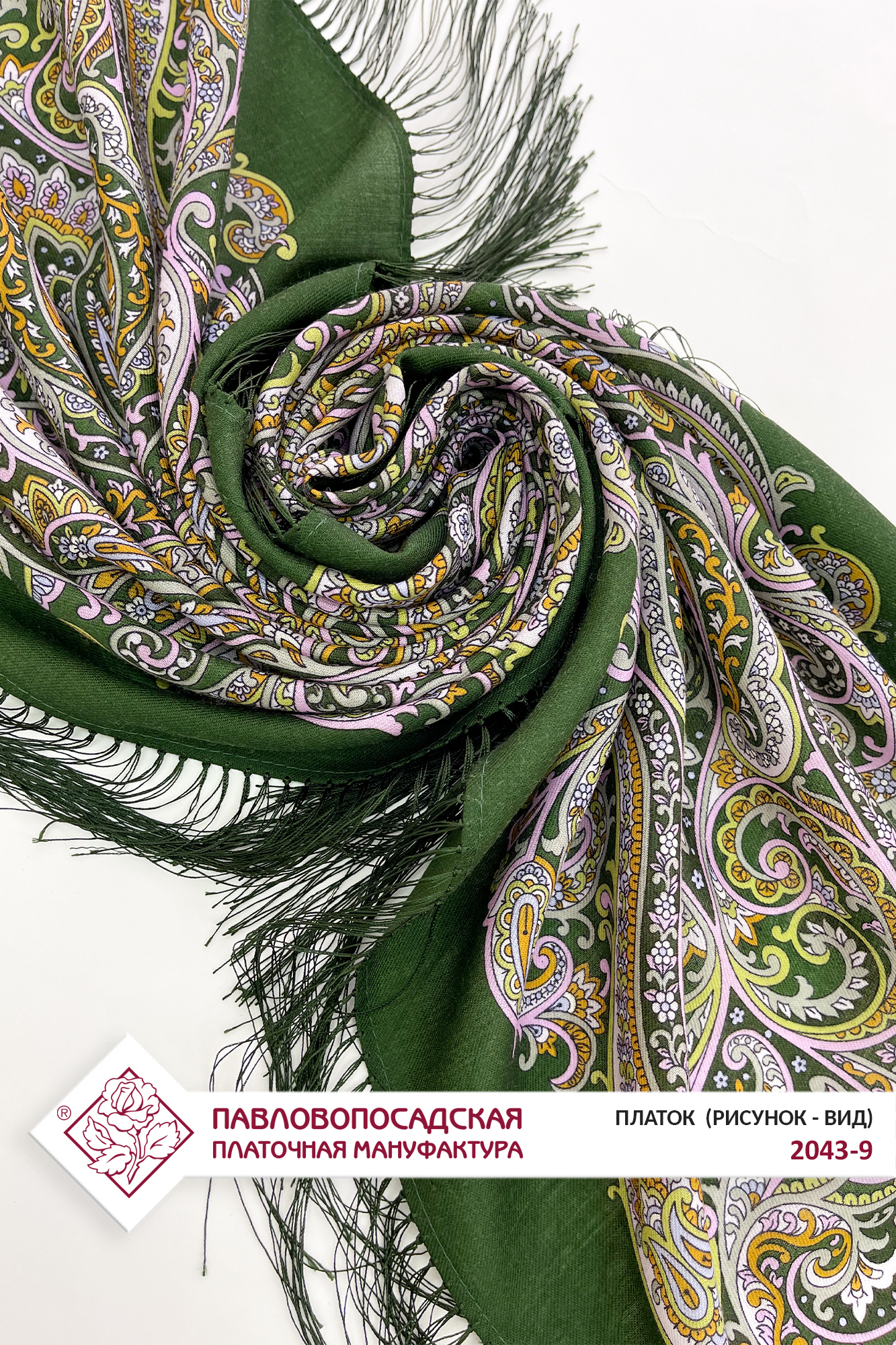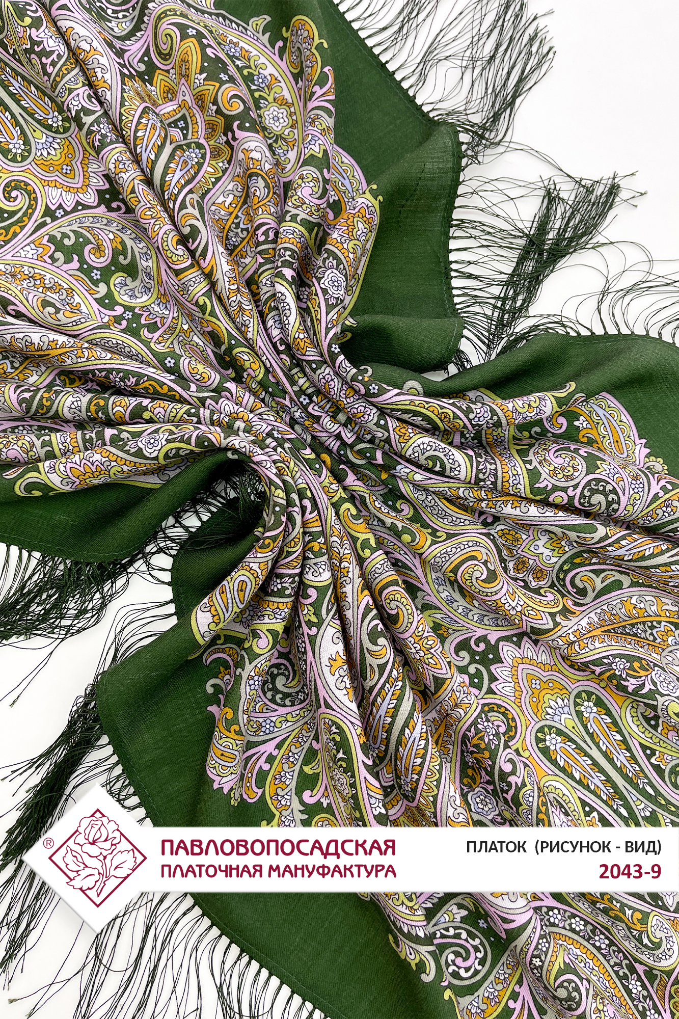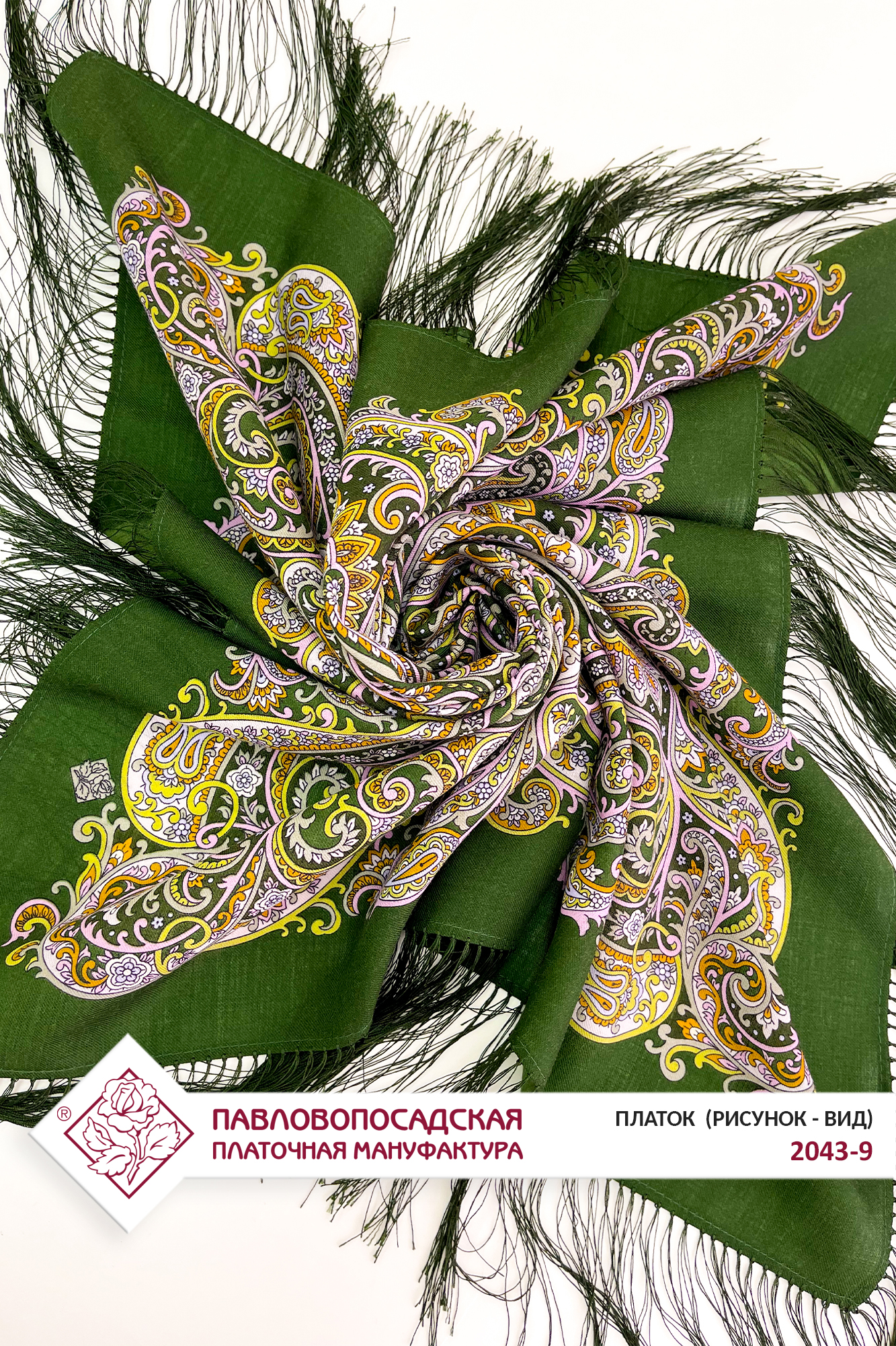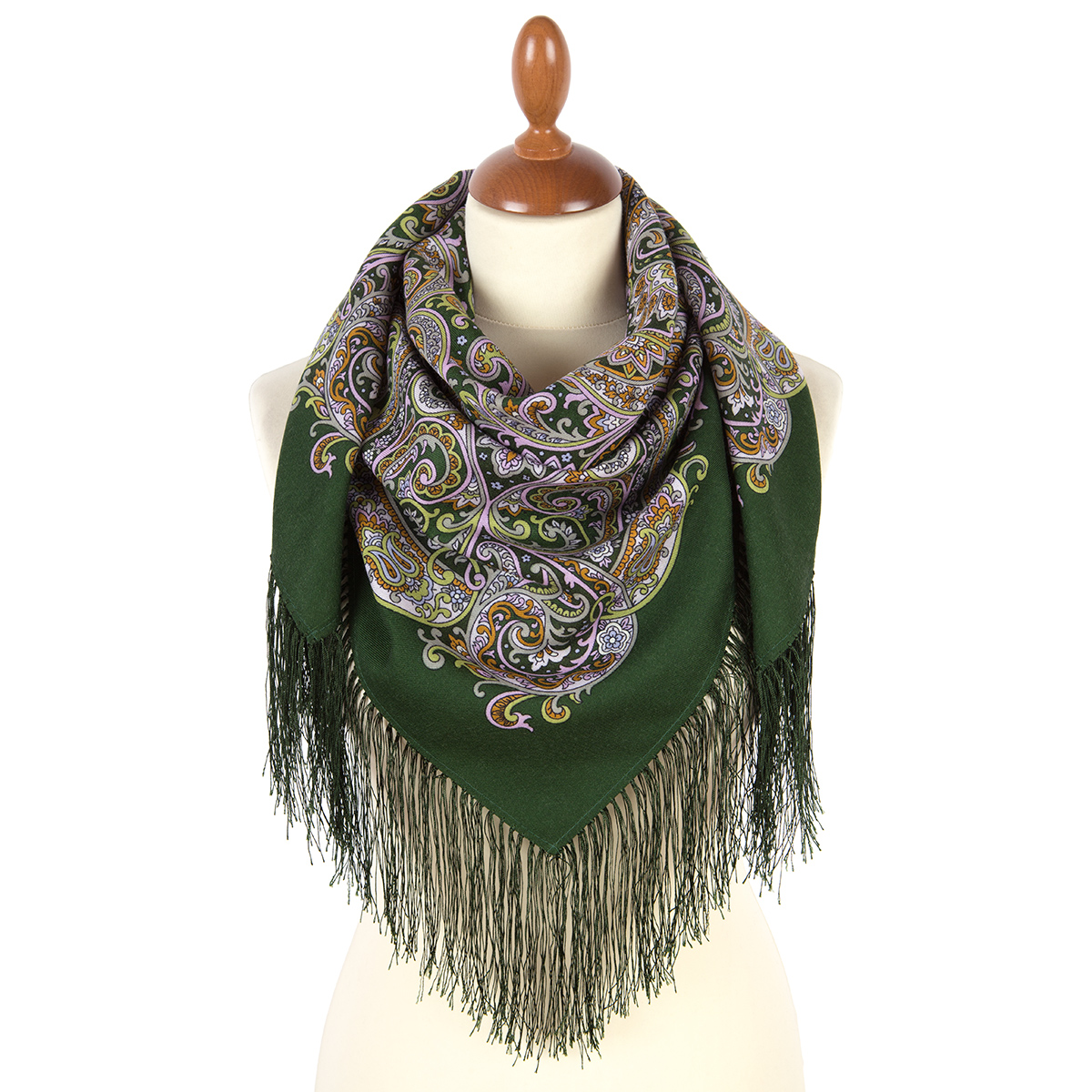 Платок шерстяной с шелковой бахромой "Весенняя метель", 2043-9, 89x89 см