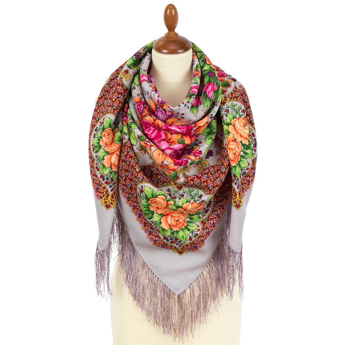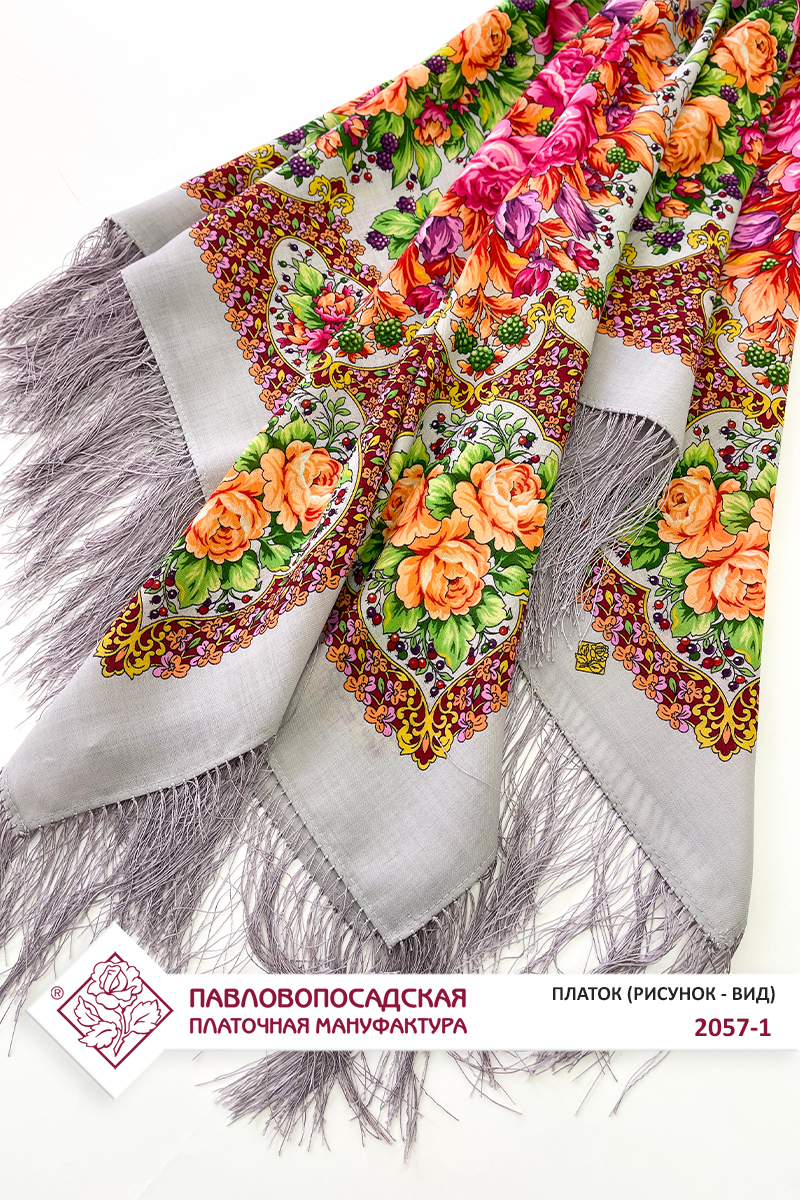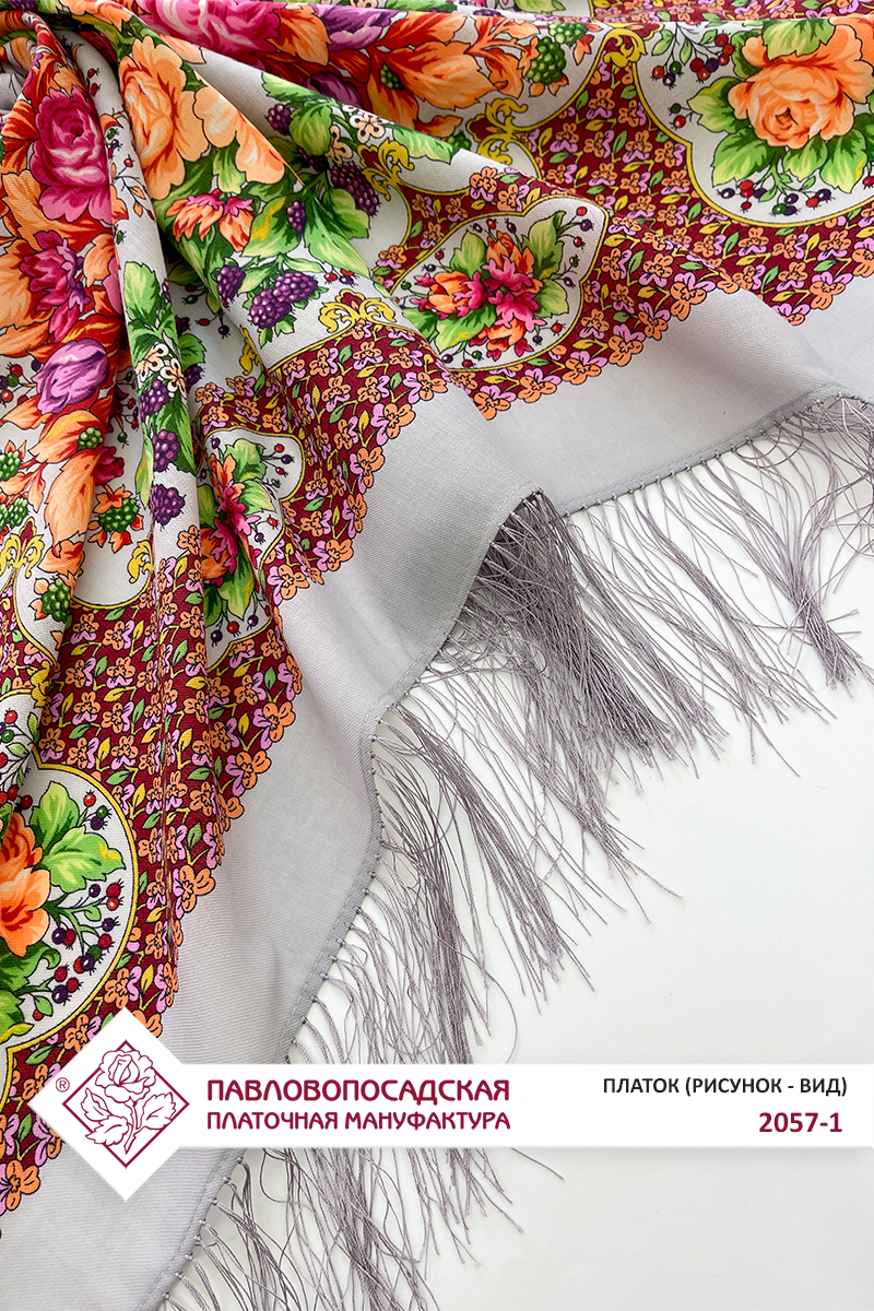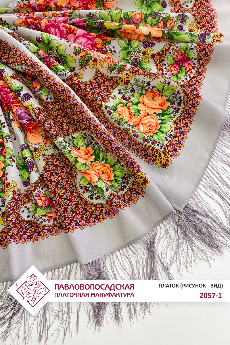 Платок шерстяной с шелковой бахромой "Аромат цветущих роз", 2057-1, 125х125 см