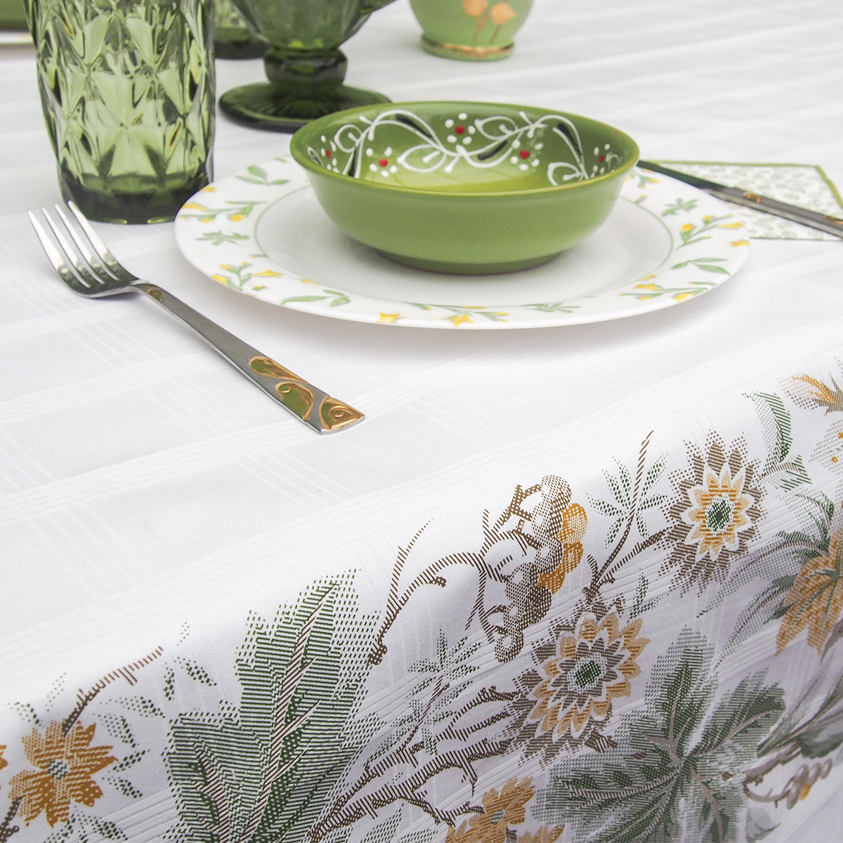 Скатерть (хлопок) "Лесная нимфа", вид 2, 144х240 см Ткань - белая с ткацким рисунком в виде клетки (рисунок виден на увеличенном изображении). Скатерть «Лесная Нимфа» из экологичной стопроцентной хлопковой ткани с водо-, масло- и грязеотталкивающей пропиткой станет незаменимым атрибутом как праздничной, так и повседневной сервировки стола. Легкий цветочный рисунок оптимально подойдет для разных случаев и отлично впишется в любой интерьер. Благодаря защитной пропитке изделие задерживает капли жидкостей на своей поверхности, тем самым оберегая поверхность стола. Загрязнения легко отстирываются от ткани. Плотность скатерти гарантирует долгий срок службы, при этом материал достаточно мягкий для того, чтобы получалась красивая драпировка. Все скатерти промаркированы по системе "Честный знак", что обеспечивает гарантию подлинности и качества реализуемой продукции. Цветопередача может отличаться в зависимости от индивидуальных настроек Вашего монитора. 2 190 руб. Наличие: мало Рисунок 1079-2 |