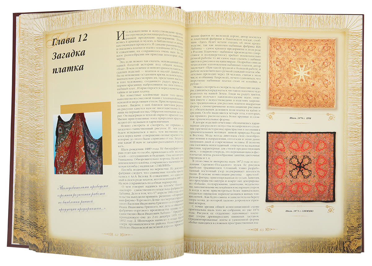 Книга Анатолия Баровского "Платочной радуги узор" Книга о знаменитом павловопосадском платке. Автор подробно рассказывает о старейшем платочном предприятии России, о его рождении, о его тернистом пути, прошедшем через революцию, гражданскую войну, Великую Отечественную войну, перестройку 90-х годов и о том, как удалось выстоять, начать восстанавливать, развивать предприятие, автоматизировать устаревшие технологические процессы, производить инновационные преобразования, намечать этапы дальнейшего перевооружения предприятия. Описана технология изготовления платков и шалей в прошлом и настоящем. Рассматриваются декоративные особенности платков и шалей. Книга знакомит с главным богатством предприятия - людьми, среди которых выделяются самородки, оставившие память на века, знакомит с родоначальниками, основателями фабрики, рассказывает о творческом коллективе художников,именитых, заслуженных, очень талантливых. 2 100 руб. Наличие: нет Рисунок platradugiyzor |