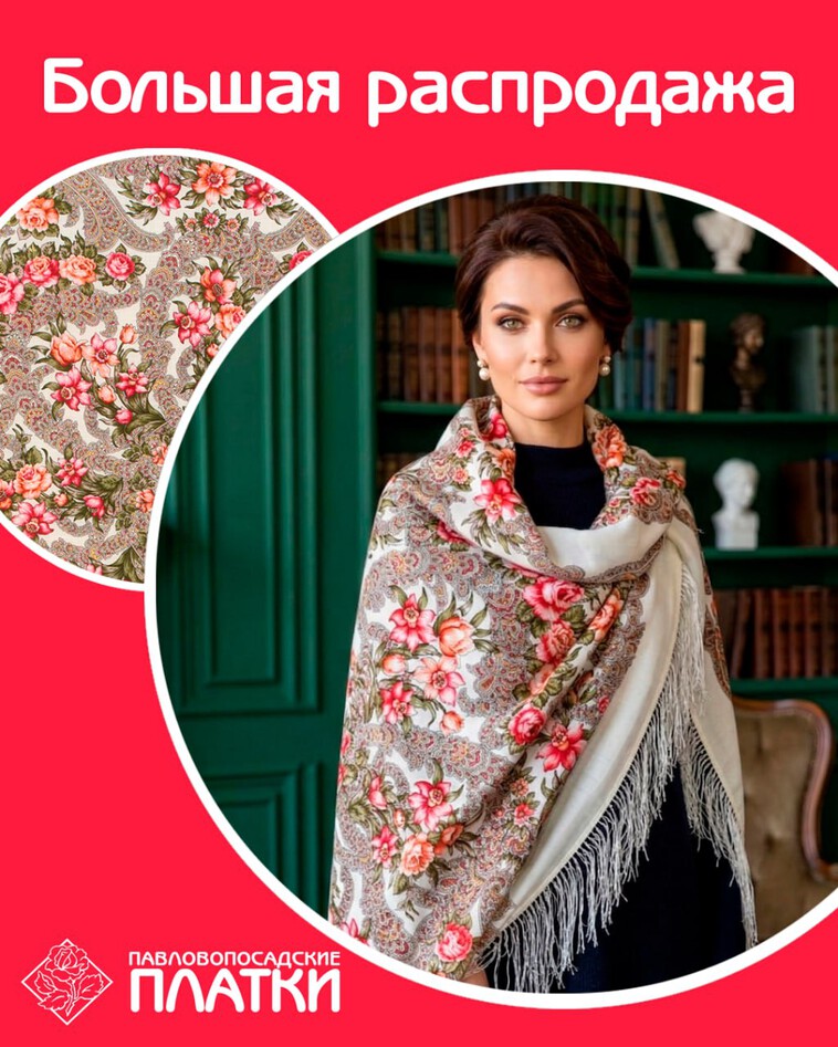 Друзья, сообщаем, что со 2 апреля 2026 года мы объединяем два магазина в один, чтобы сделать сервис ещё удобнее. Весь ассортимент платков, шалей и аксессуаров теперь будет представлен в одном месте.