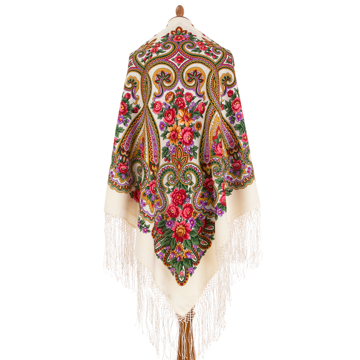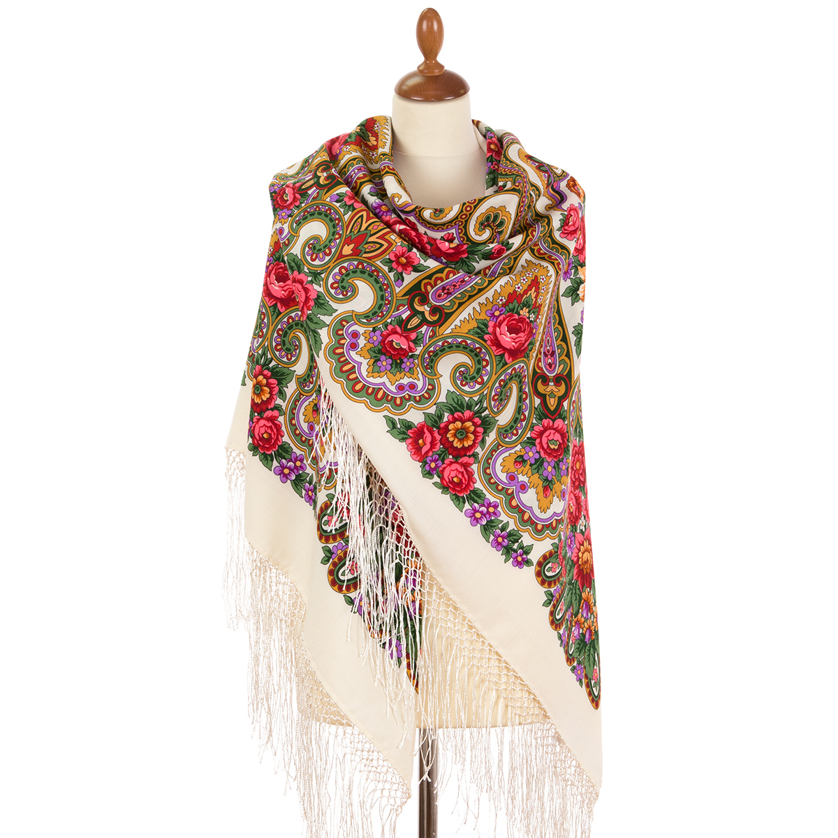 Шаль из уплотненной шерстяной ткани с шелковой бахромой "Юбилейный , 219-4, 148х148см