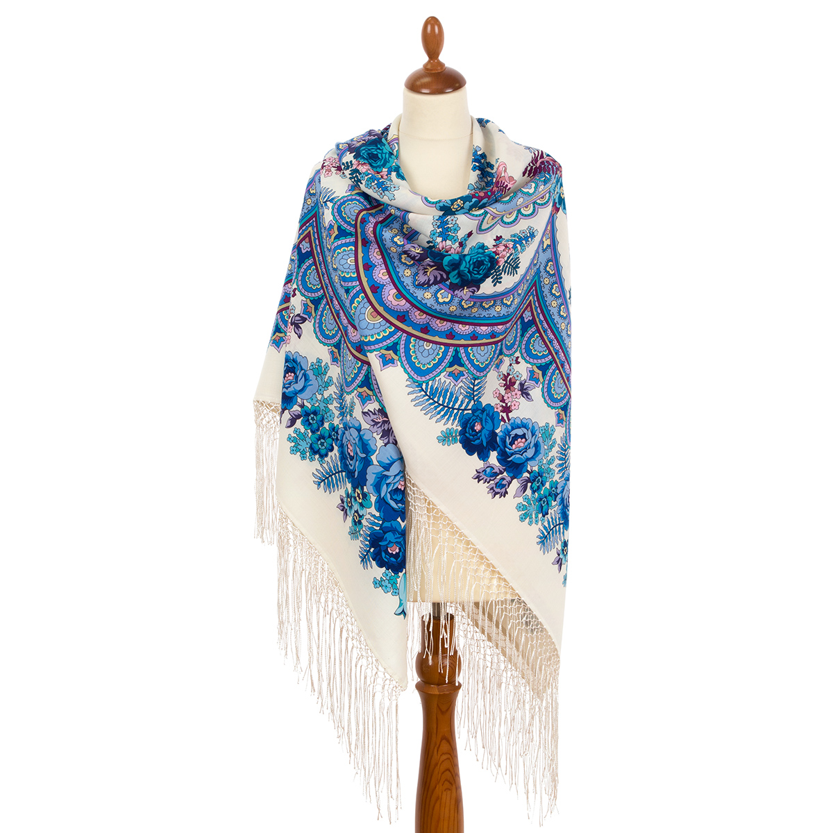 Многоцветный платок из уплотненной шерстяной ткани с шелковой бахромой "В сто сорок солнц закат пылал", 2137-1, 148х148см