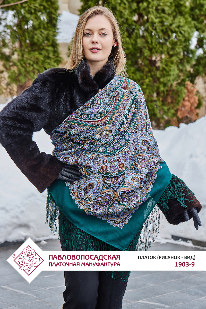 Платок шерстяной с шелковой бахромой "Пряничный домик", вид 9, 125х125 см