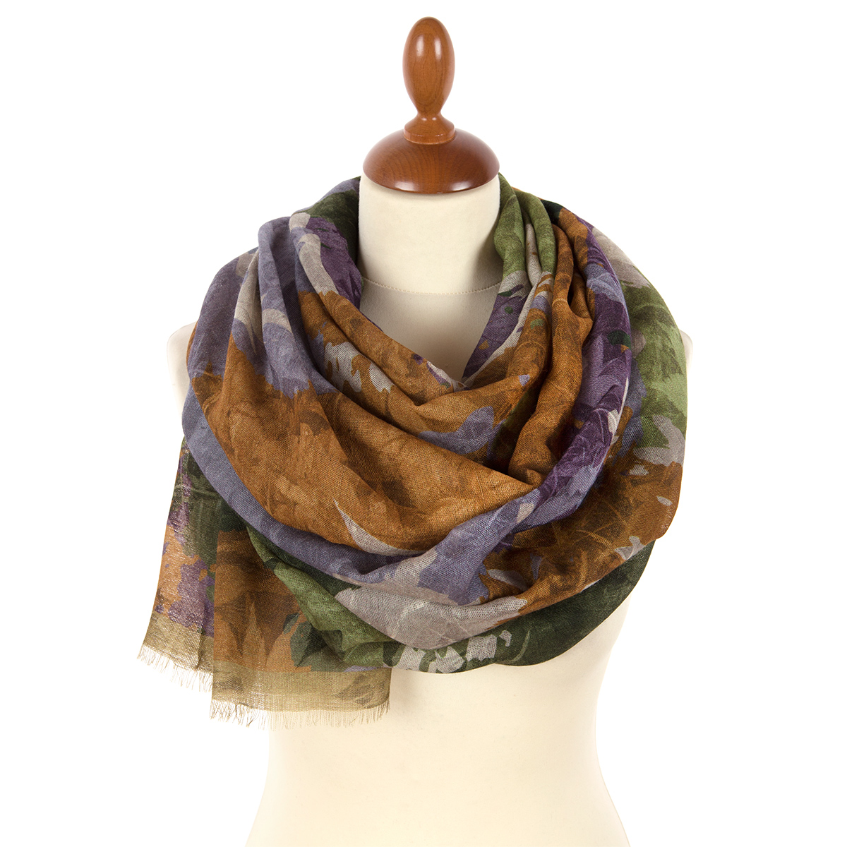 Палантин шерстяной набивной "Звуки леса",11272-10, 80х230 см