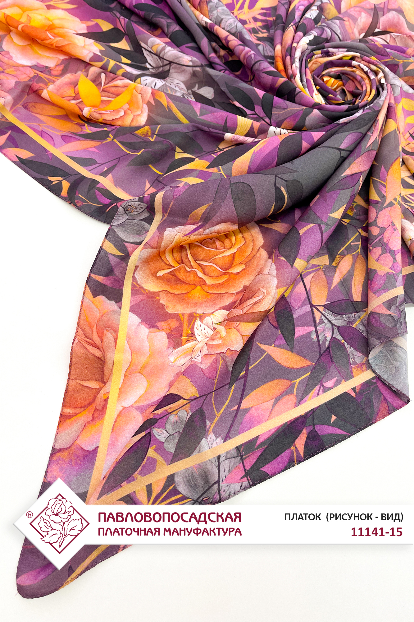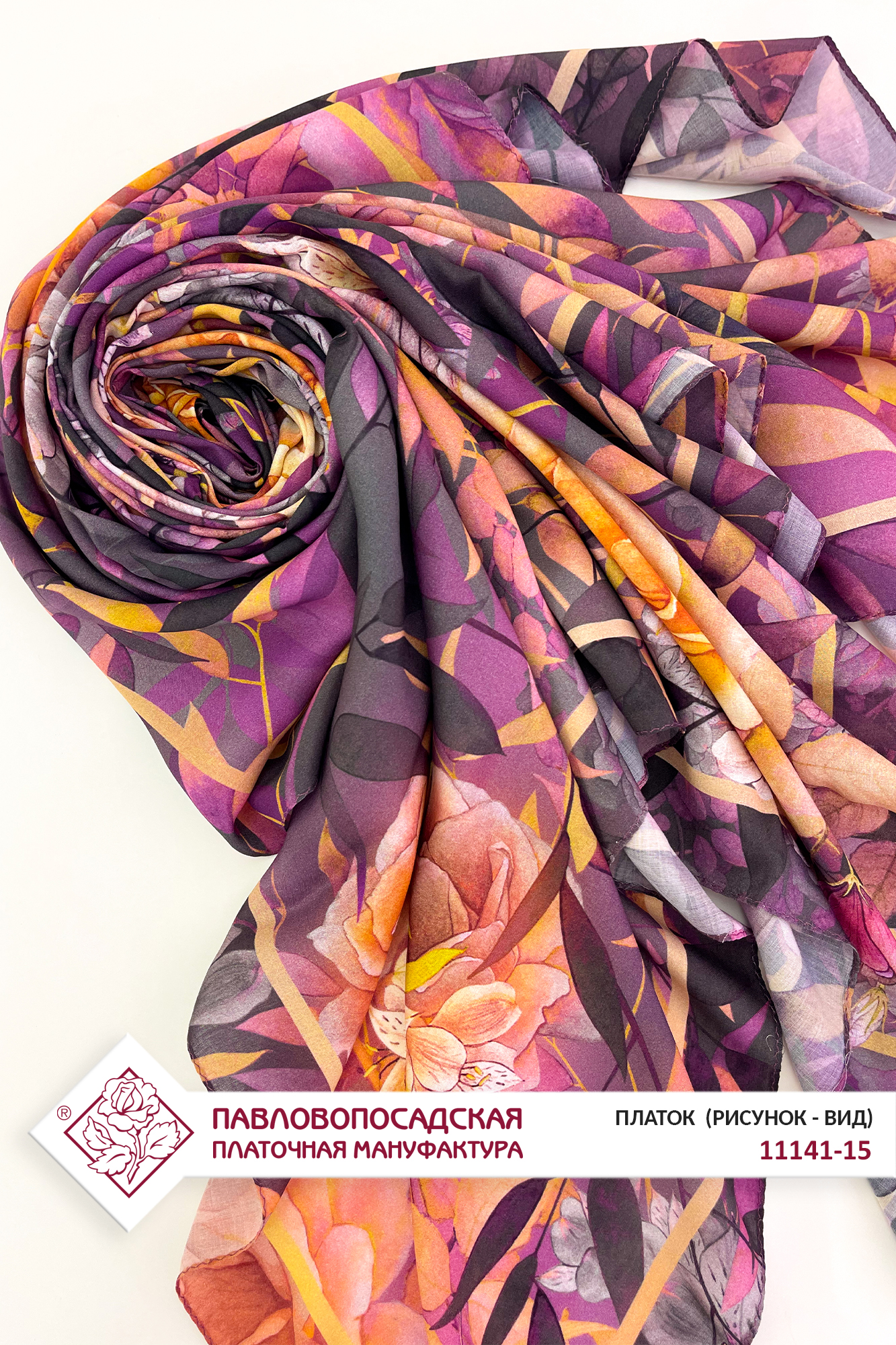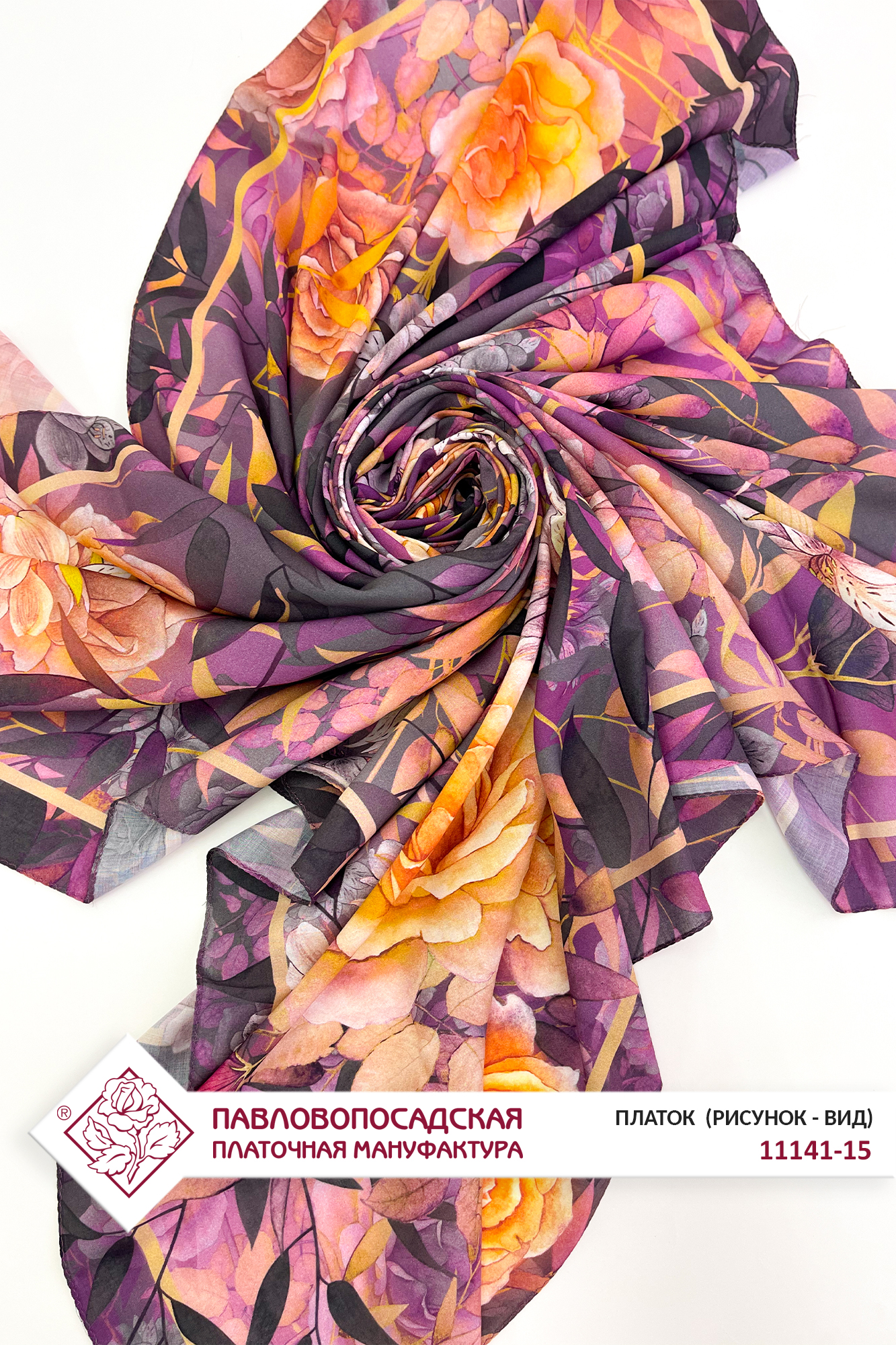 Платок из вискозы "Цветочный ветер" 11141-15, 135х135 см