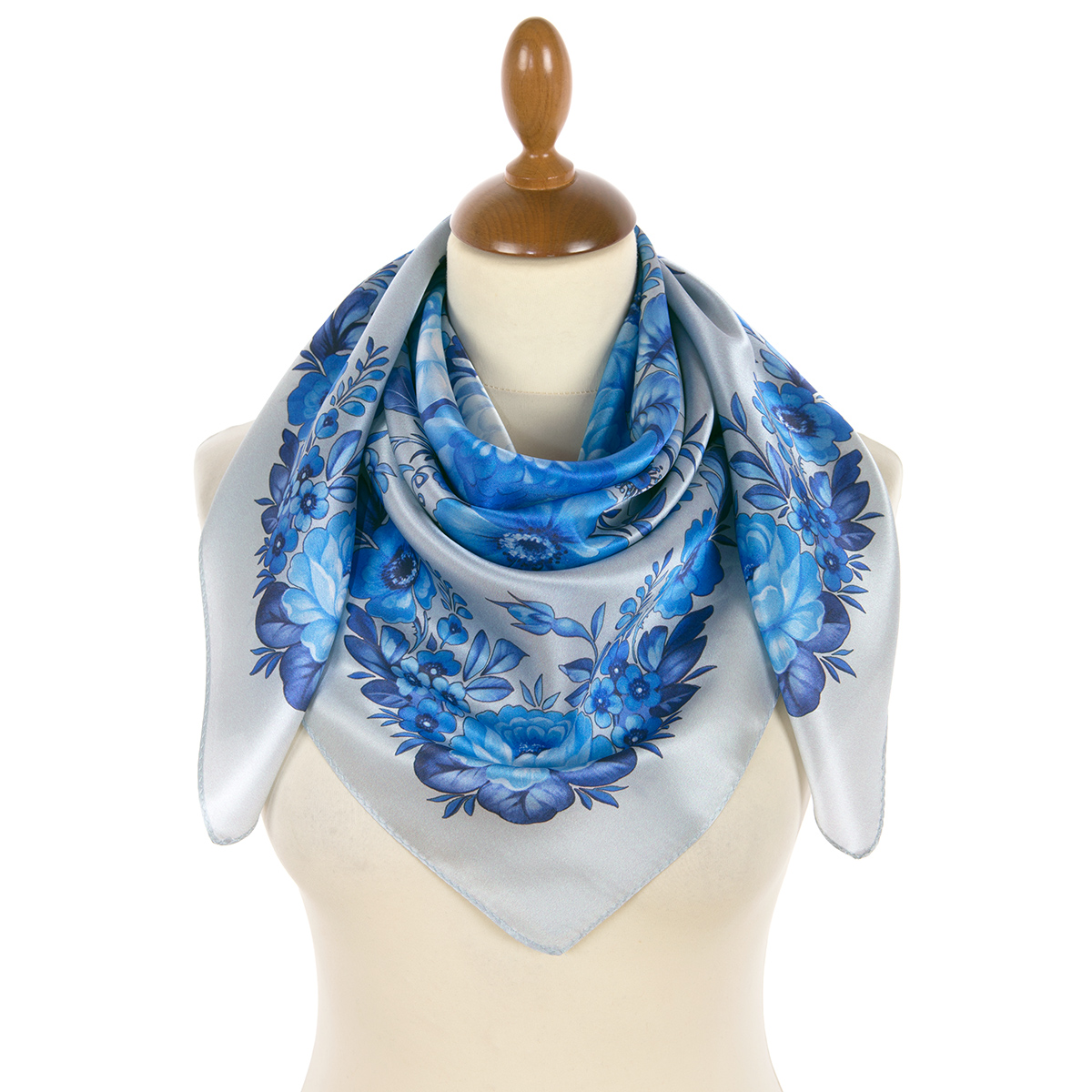 Платок шелковый (атлас) "Жостовский букет" 10063-1, 89x89 см