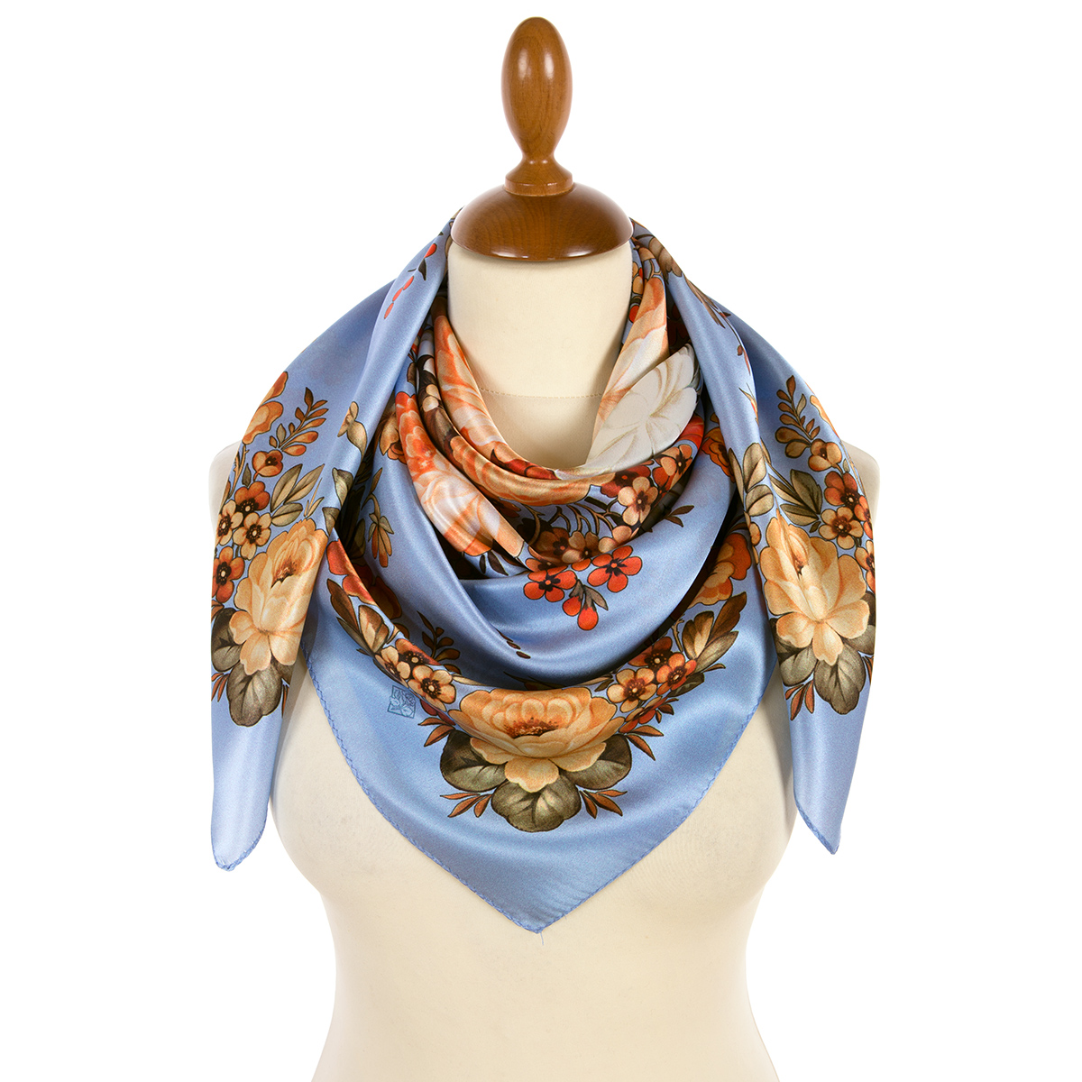 Платок шелковый (атлас) "Жостовский букет" 10063-13, 89x89 см