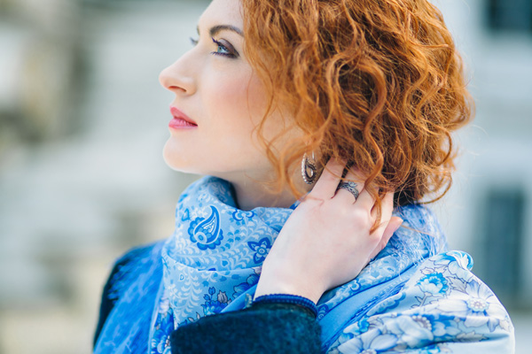 Handmade work and fine detailing gives the products a special, unique charm. Ornaments are interestingly combined with Pavlovo Posad shawls, creating a single completed image. For example, the main ornament - a clamp for a scarf, as if splits into independent elements, finding an independent artistic embodiment in precious products. The ornament of the accessory is inspired by floral motifs: intricate "cucumbers" and lily flowers.