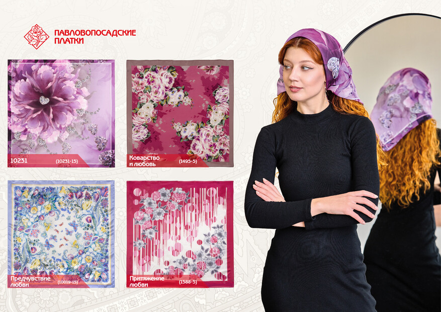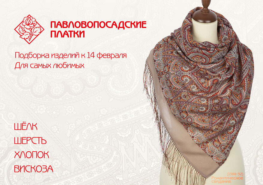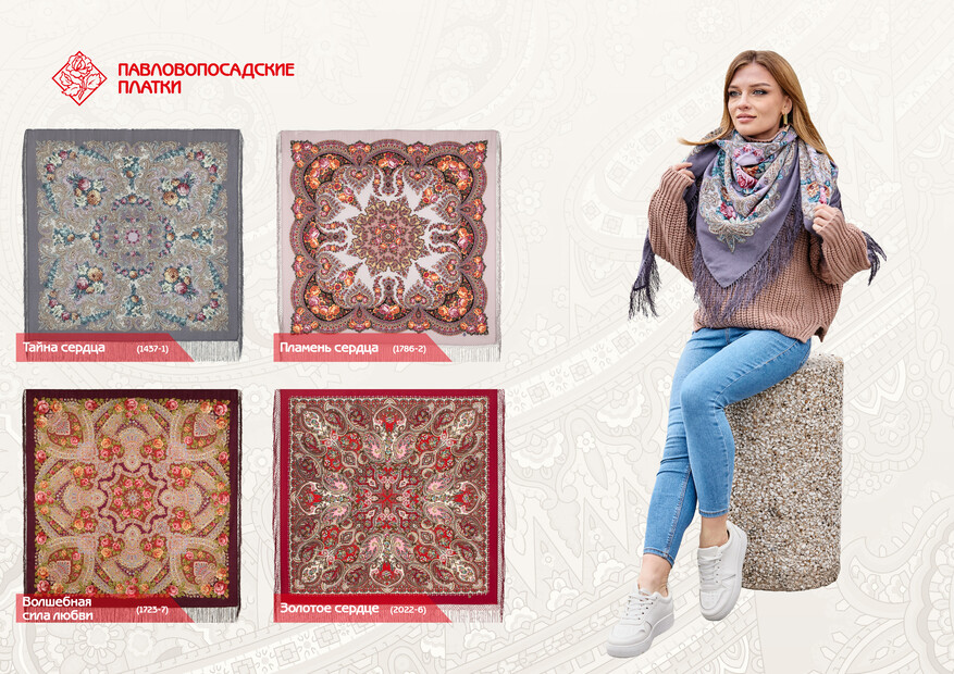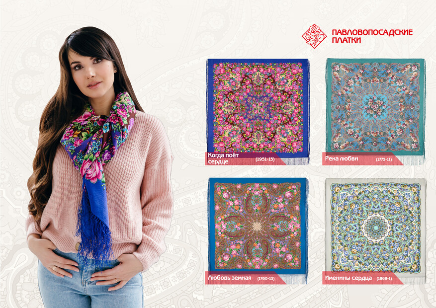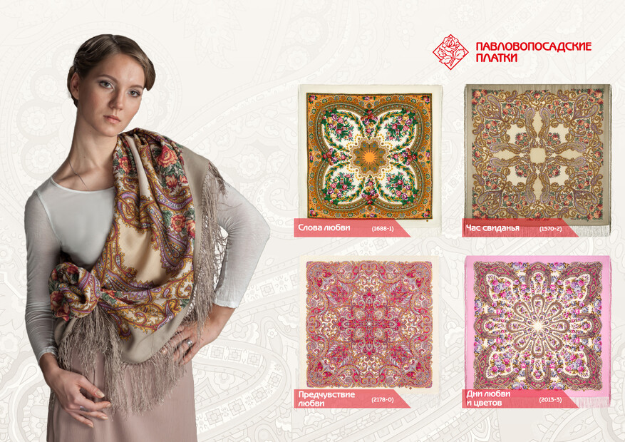 Наше предприятие выпускает широкий ассортимент товаров. За последние годы к традиционным платочным изделиям добавились мужские шарфы и кашне, палантины и женские шарфы разного размера, а также скатерти. На страницах этого раздела мы будем давать рекомендации по их выбору